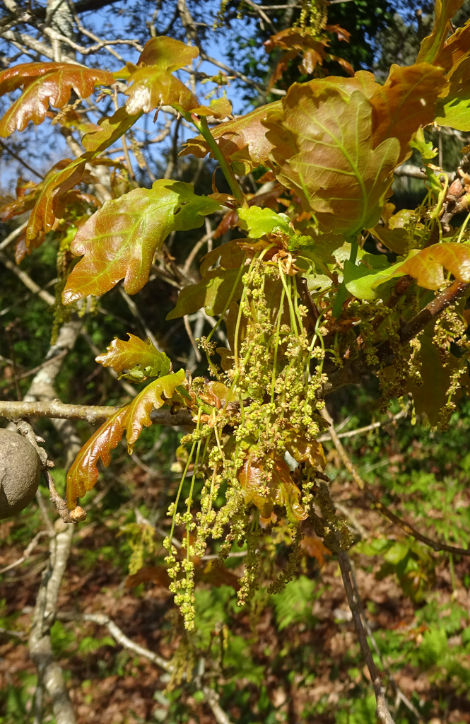 No final de Março, ainda com boa parte das macieiras em repouso, os carvalhos já se apressavam a brotar e a florir. Embora este ano mais tarde do que nos anteriores, pois Março e a generalidade do Inverno não foram tão quentes como nos anos anteriores.
