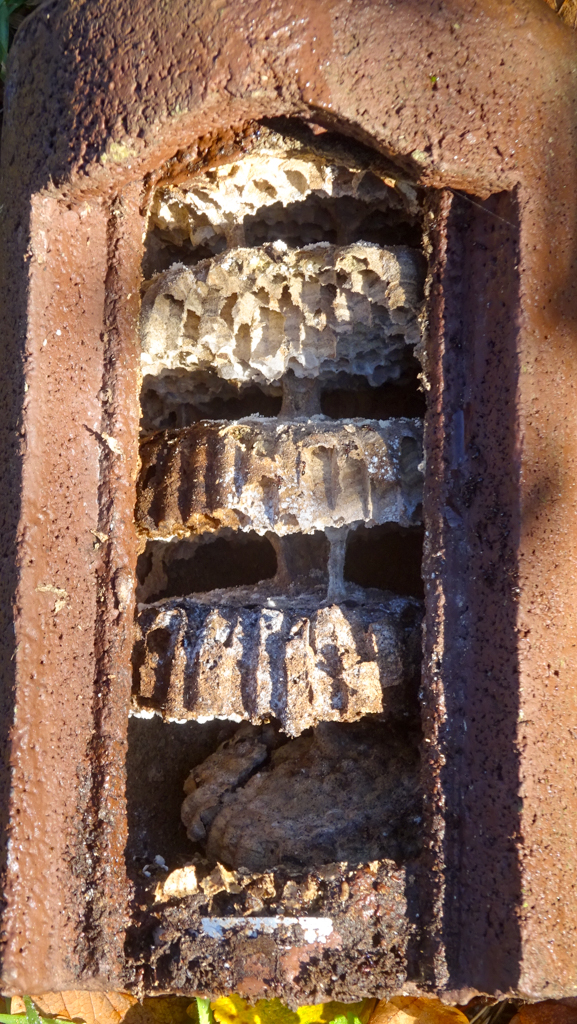 No final do Outono, já em Dezembro, foi tempo de visitar os caixotes-ninho instalados na vizinhança dos pomares, verificar se foram usados e limpar os materiais do ano anterior. Usados, foram quase todos, só que nem sempre pelas aves. As aguerridas formigas são visitantes frequentes e, ocasionalmente os ninhos são ocupados por estruturas mais invulgares.