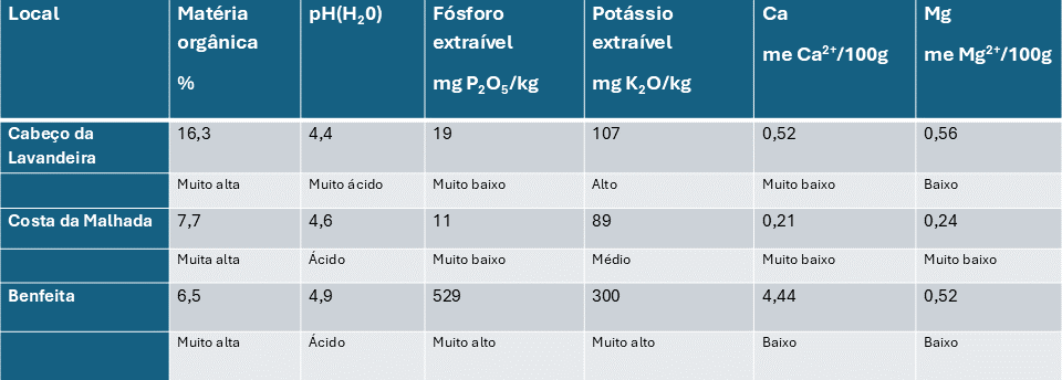 O substrato rochoso das montanhas é o xisto, sendo o solo resultante predominantemente argiloso. Nos vales, a acumulação de sedimentos deu origem a solos profundos e férteis (aluviões), mas nas encostas os solos são frequentemente delgados e pedregosos, embora não ocorram muitos afloramentos rochosos extensos. No Cabeço Santo, sim, encontram-se alguns. A fertilidade dos solos das encostas é normalmente reduzida, caracterizada pela sua elevada acidez e carência de nutrientes chave (fósforo, por exemplo) ainda que os níveis de matéria orgânica possam ser elevados.