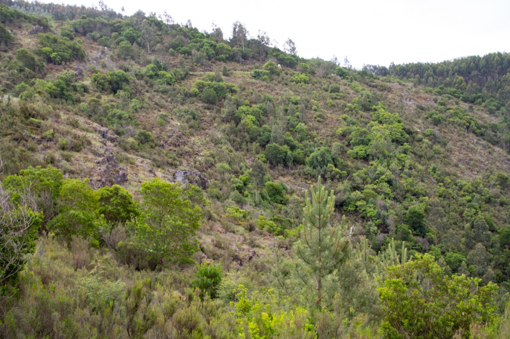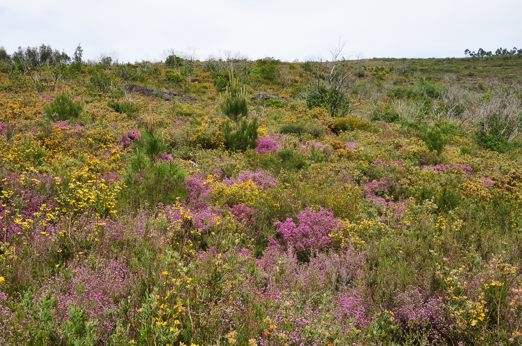 A vegetação espontânea da região foi muito alterada pela intervenção humana, mesmo que extensas áreas não fossem cultivadas. É muito difícil, senão impossível, ter um vislumbre da ocupação original destas montanhas, mesmo remontando ao período anterior à presença do eucalipto. É certo que as grandes extensões das montanhas estavam então revestidas com o matagal atlântico, uma formação lenhosa e densa de arbustos baixos dominada por urzes, carqueja e tojos. No entanto, essa ideia geral não contempla os nichos, locais específicos com características particulares. É também certo que as terras cultivadas ocupavam as terras mais férteis e menos declivosas, desde os vales às cumeadas dos montes.