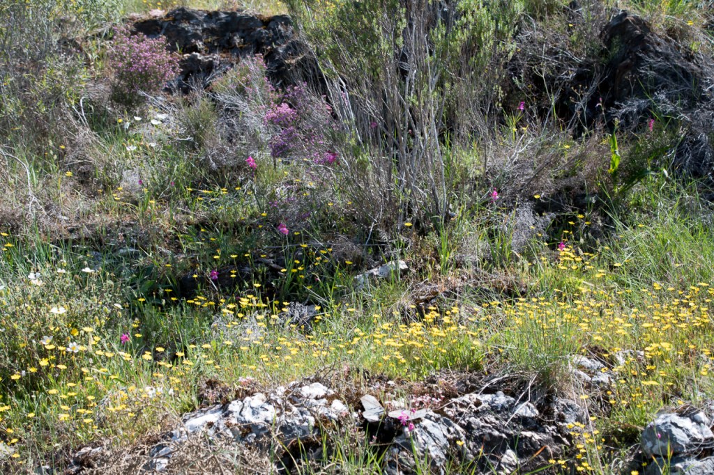 Para além dos bosques de quercíneas, praticamente inexistentes na região, podem-se identificar habitats com características e espécies particulares: já citei o matagal atlântico, que terá largamente substituído os antigos bosques, mas encontram-se também as galerias ripícolas (habitat ripícola), presentemente também muito danificadas e os afloramentos rochosos (habitat rupícola). Foi talvez o habitat rupícola o que menos foi danificado pela intervenção humana. Em Belazaima, os afloramentos rochosos do Cabeço Santo são uma mostra disso: aí pode-se observar uma diversidade de plantas sem paralelo à escala local.
